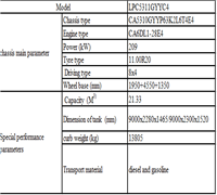 底盤(pán)主要性能參數(shù) | 底盤(pán)型號(hào) | CA5310GYYP63K2L6T4E4 | |
